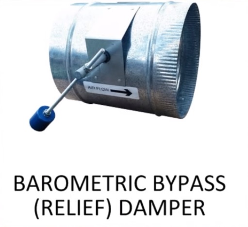 In our opinion, this is the worst way to get rid of the extra air because it sends it immediately back to the return through an 8 to 10” duct with a barometric damper that cracks open with the “extra” air pushing against it.