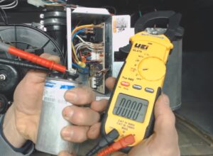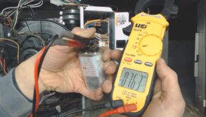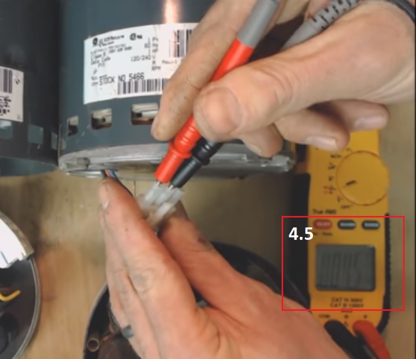 On our pic above, you see that we’re reading 7.63 microfarads and our reading on the capacitor was 7.5 microfarad. The capacitor is good but if it was bad, the multimeter is reading zero microfarads. We usually like to see them up or above the rating.