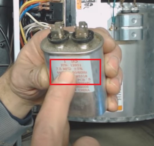 Read your microfarad reading, ex. 7.5 Microfarads (MFD). You’ll also see that it needs to be within plus or minus five percent (+/- 5%).