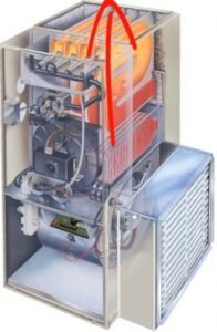 If the flame were to roll out or overheat the furnace, a series of safety switches will engage, and tell the control board to turn the furnace off.