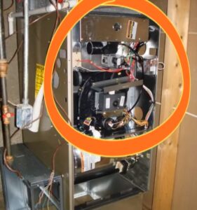 And the control board is the brains of the system that will control the following events. The first motor to come on will be the inducer motor. Not a large motor by any means, but it’s the one that gets rid of the fumes spent by the flame that warms your home.