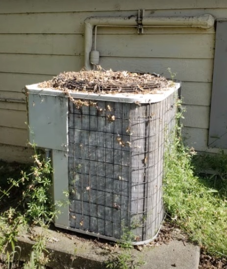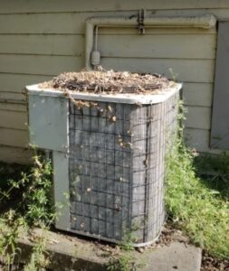 Next, sometimes sticks and leaves can block the fan blade on top of the AC from spinning, which causes some strange noises with the AC, so definitely go outside and at least check to see if any sticks or toys are preventing the fan blade from spinning.